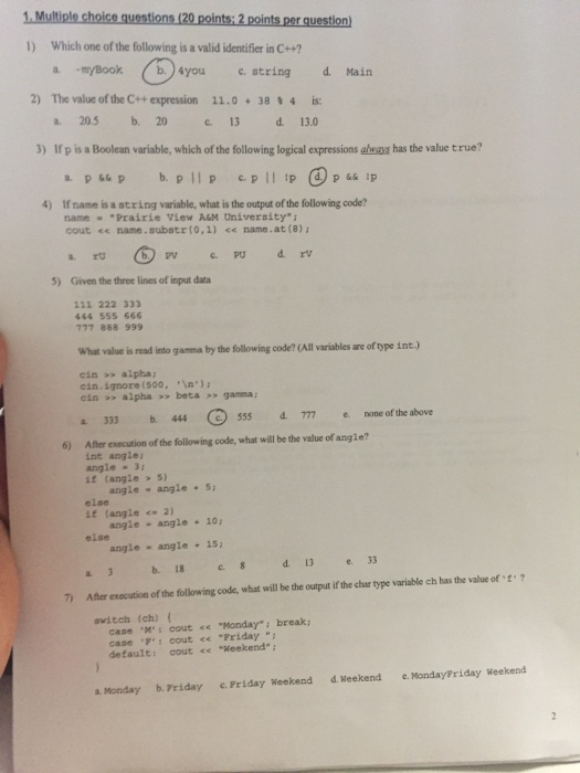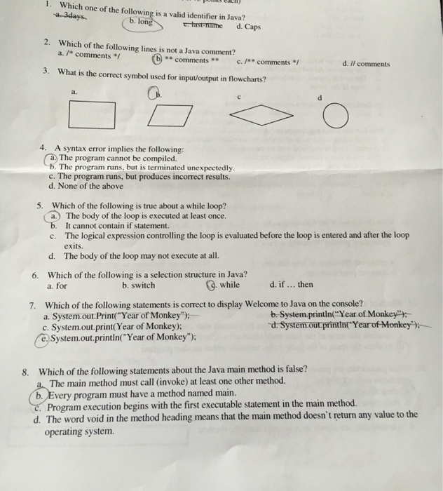 Solved Which One Of The Following Is A Valid Identifier In Chegg Com